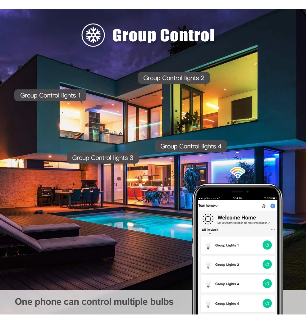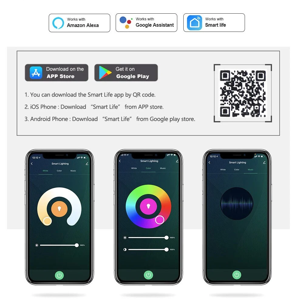 Wide Application and scene system: You can set different light modes on smart life to match various occasions including kitchen, living room, bedroom. Also can be used for table lamp, cafe, bar, party, etc. and have this functions Color Palette, Group Control, Sunlight, Timer, Sunrise, Sunset, Dimmable, MIC Function, DIY mode, Scene mode.