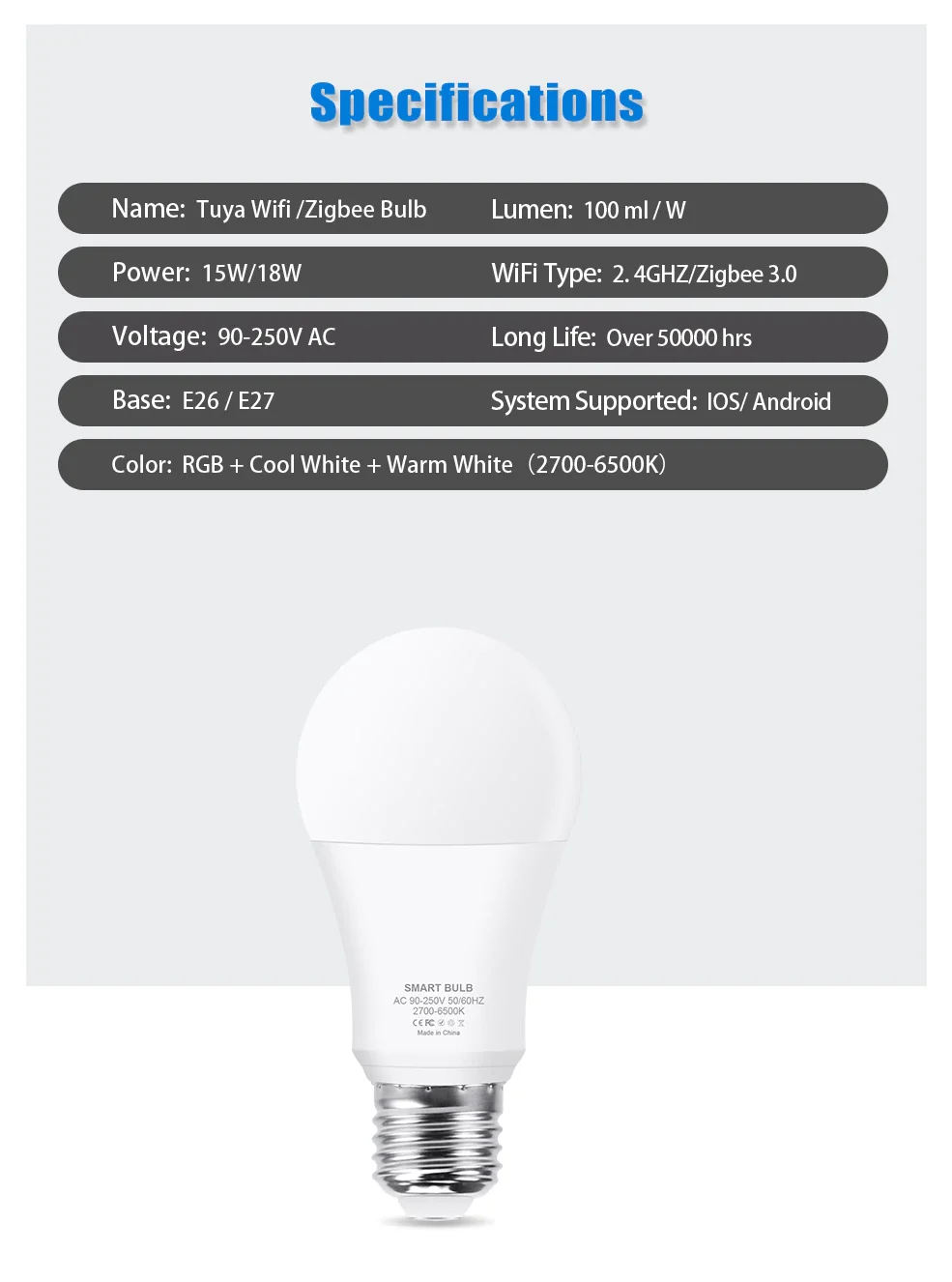 Function: Voice Control, APP Remote Control, Dimmable, support for Tuya, Amazon Alexa Echo,Google Home Assistant,
